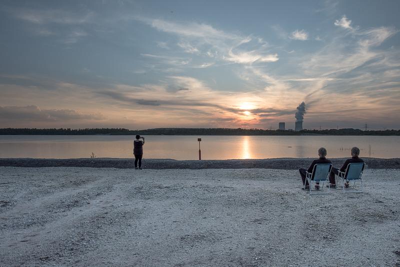 Lovely Sunset over former open pit, Germany. With power plant. With Photographer. One of the rare, non-limited images in the series. © 2021 by Michael Zettler